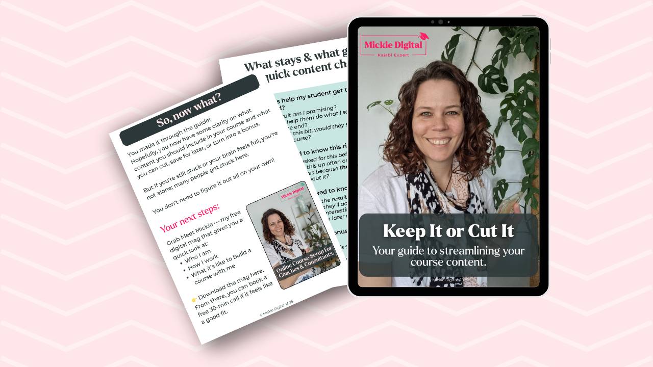 This free guide walks you through exactly how to decide what content to keep, what to leave out, and what can be turned into a bonus, so you can stop guessing and start building your course.
